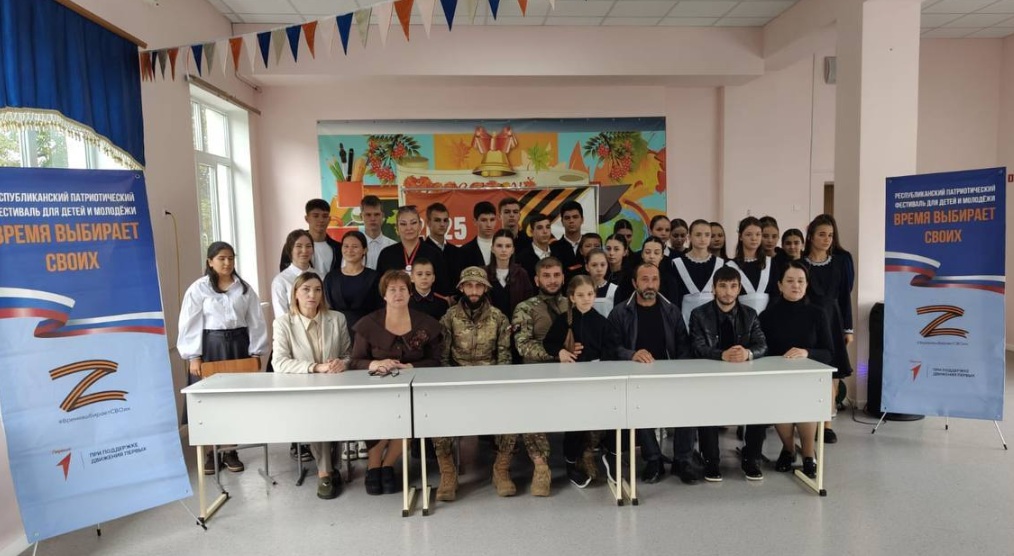 ‼️1 октября в рамках Фестиваля «Время выбирает СВОих», на базе МБОУ СОШ им. Героя Советского Союза С.Я. Батышева ст. Николаевская Дигорского района, представителями ГАПОУ «Северо-Осетинский государственный торгово-экономический колледж» была проведена встреча с участниками СВО Георгием Ефремовичем Гобеевым, награжденным медалью «Участник СВО», медалью «Участник батальона Алания»; Георгием Тамерлановичем Казбековым, награжденным медалями «За отвагу», «За спасение погибающих»; Таймуразом Ермаковичем Казбековым; Сосланом Гурамовичем Годзоевым, награждённым медалью «За храбрость», «Орденом Г. Жукова».