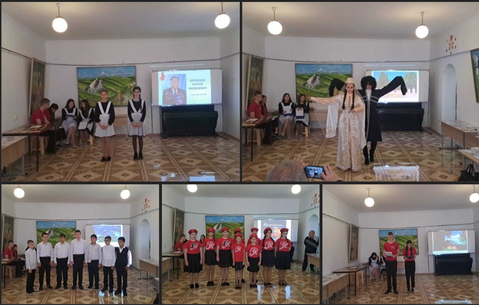 В заключение мероприятия учащиеся 6б класса (классный руководитель Етдзаева З.С) исполнили песню «День Победы», напомнили присутствующим как важно помнить тех, кто грудью страну защищал и жизнь за победу отдал. Почтили подвиги геройские солдат минутой молчания.